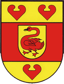 Die roten Seerosenblätter waren seit spätestens dem 13. Jahrhundert das Spiegelbild der Grafen von Tecklenburg - allerdings auf silbernem Feld. Sie wurden 1934 in das Wappen des Kreises Tecklenburg übernommen.